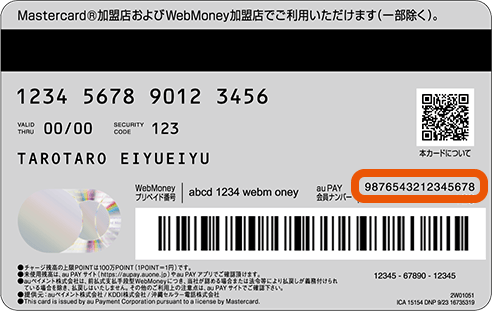 Mastercard番号(16桁)も、管理番号(16桁)もカード裏面に記載しています。
